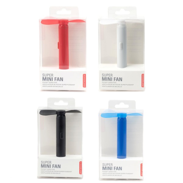 Kikkerland Handheld The Super Mini Compact Portable Brass Metal Pocket Sized Small Fan, Battery Operated (AAA), in Blue/Black/Red/White, (1) Random Color, For Travel, Work, Home