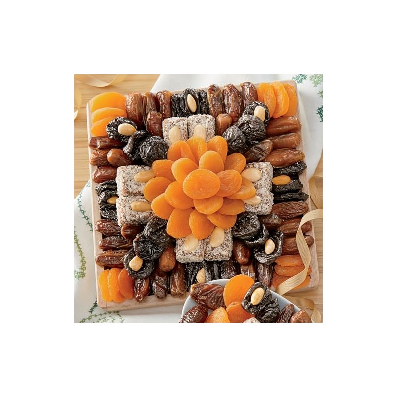The Swiss Colony Holiday Fruit Tray - Assorted Dried Fruits, Sweet Dates, Date Nut Rolls, Turkish Apricots and Prunes - 1 lb