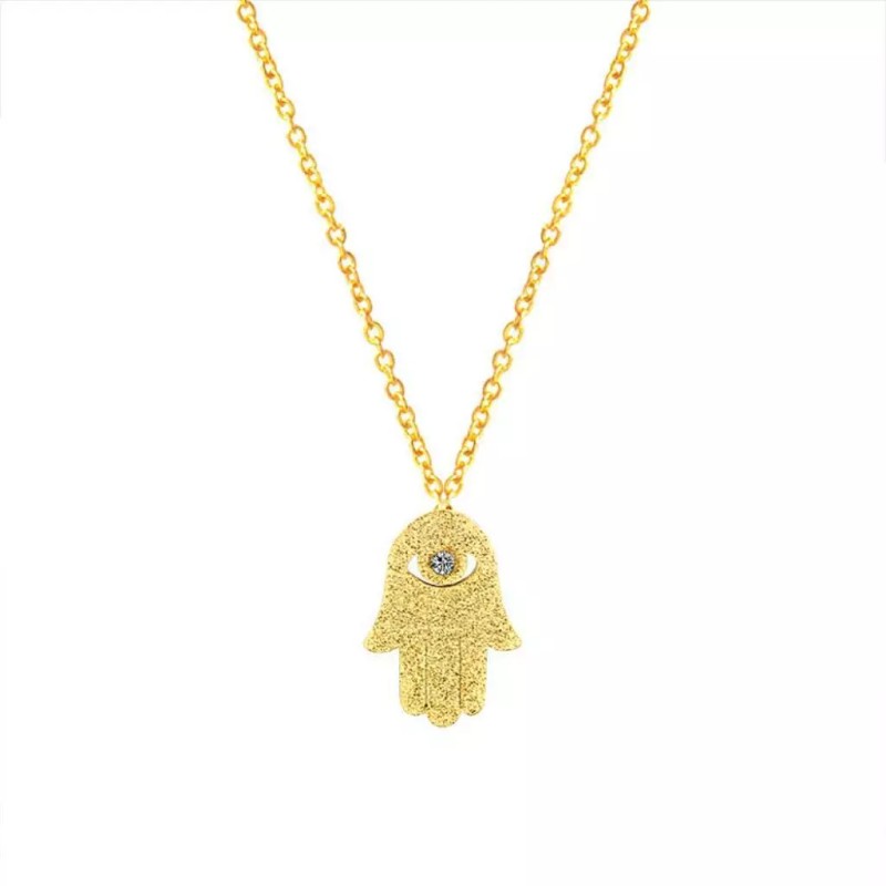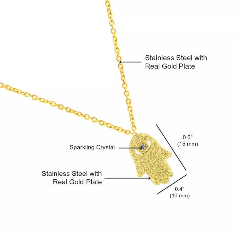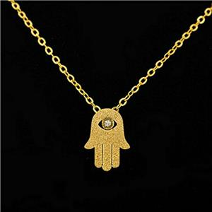 The Tiny Dragon TINY HAMSA HAND NECKLACE 17" Chain Tiny Glittering Charm CZ Evil Eye Gold NEW