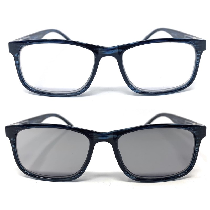 - LENS MAGNIFICATION STRENGTH: Available in +1.5, +2.0, +2.5, +3.0. AVAILABLE COLORS: Blue with Smoke Lens, Black with Smoke Lens, Brown with Smoke Lens, Black Tortoise with Smoke Lens. Includes a Microfiber Cleaning Carrying Pouch. MEASUREMENTS: Frame Width: 137 mm, Lens Height: 35 mm, Lens Width: 51 mm, Temple Length: 139 mm. x Please note: You will receive ONE pair of glasses. The picture showing two pairs of glasses is only to show you what the glasses will darken to when exposed to sunlight. x