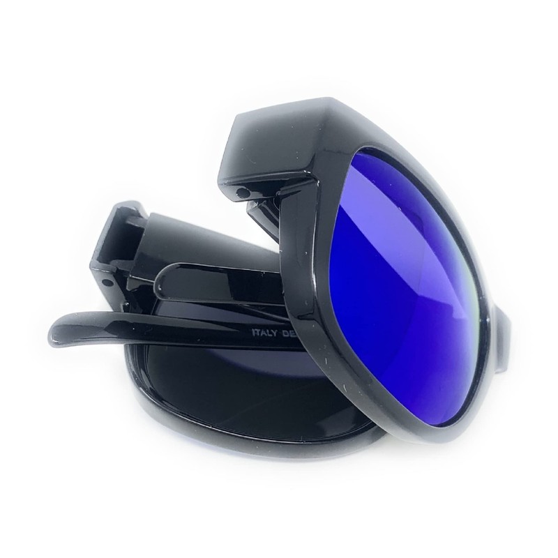 The Trendsetter Folding Fit Over Glasses, OTG, Polarized Unisex Wrap-Around Sunglasses for Men and Women, Black with Mirrored Blue