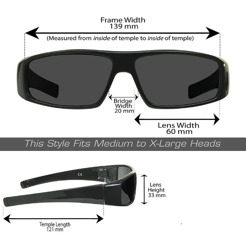 - PRODUCT DIMENSIONS: Frame Width: 139mm, Lens Height: 33mm, Temple Length: 121mm, Bridge Width: 20mm, Lens Width: 60mm. Includes Microfiber Cleaning Carrying Case. Ultra Light and Comfortable Wear. Blocks light from all angles.