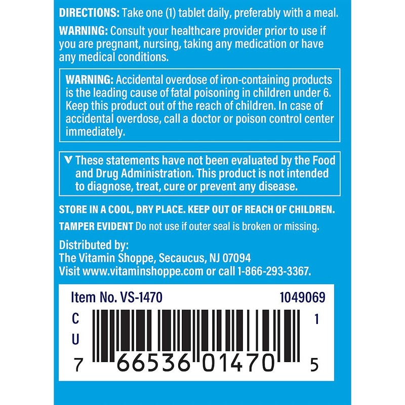 The Vitamin Shoppe Iron Complex, for Better Absorption, Supports Immune Health & Energy Production, Essential Mineral, Once Daily (100 Tablets)