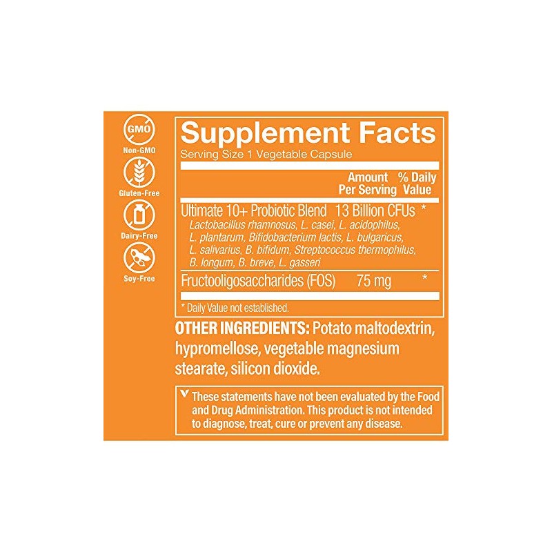 The Vitamin Shoppe Ultimate 10+ Probiotics, 13 Billion CFUs for Digestive Health, Immune Support and Respiratory Health (30 Vegetable Capsule)