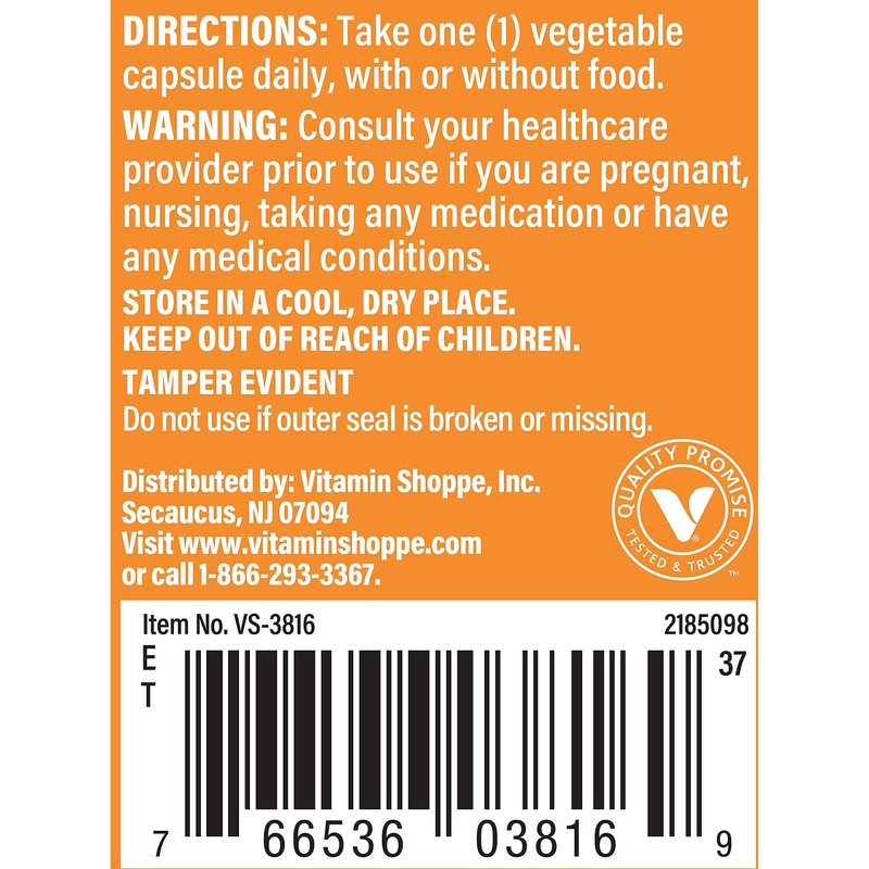 - Directions: Take one (1) vegetable capsule daily, with or without food.