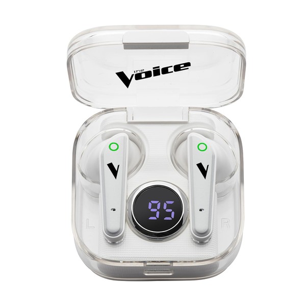 The Voice Duo True Wireless Stereo Earbuds with Mic, White Color, Charging Case with LCD Screen, Bluetooth Connect, Auto-Pairing, Use with Siri or Google Assistant, iOS or Android Compatible
