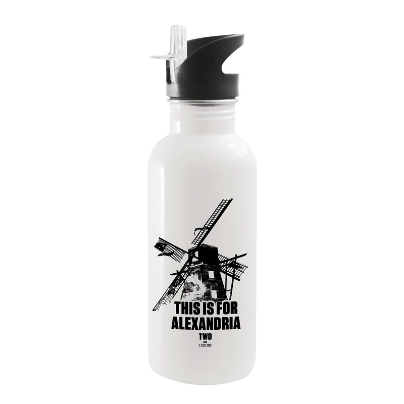 Defending your community can be tough, but you are tougher. Show your support for Maggie Rhee's efforts to protect Alexandria by enjoying your favorite beverage from The Walking Dead This Is For Alexandria 20 oz Screw Top Water Bottle with Straw. With a secure top and straw, this water bottle from The Walking Dead keeps your beverages in one secure place as you roam the post-apocalyptic world.