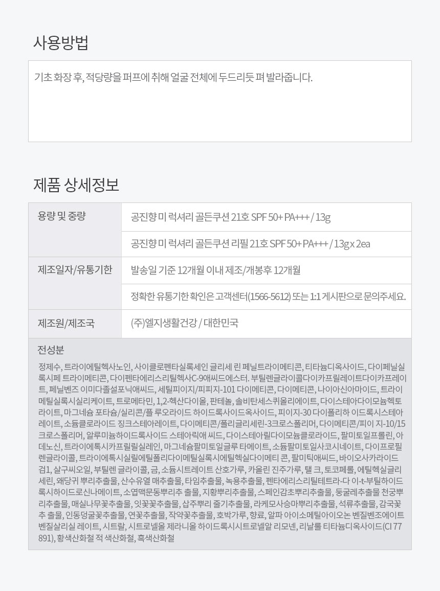 더후 공진향 미 럭셔리 골든 쿠션 21호 스페셜 기획 13gx3ea
