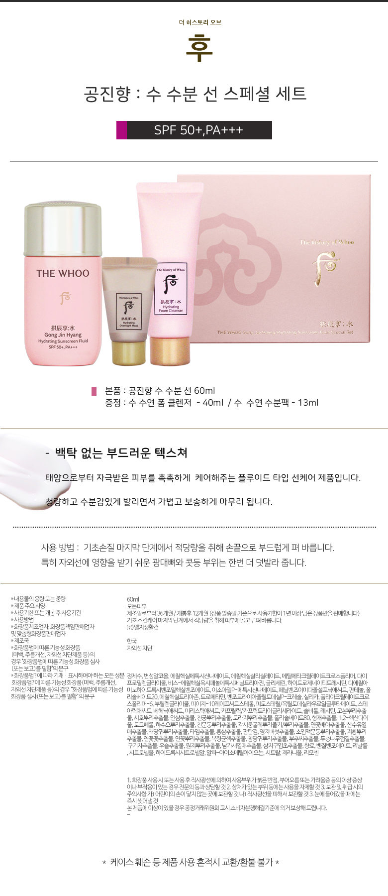 더후 공진향 수 수분 선 스페셜 세트 본품+클렌져40ml+수분팩13ml