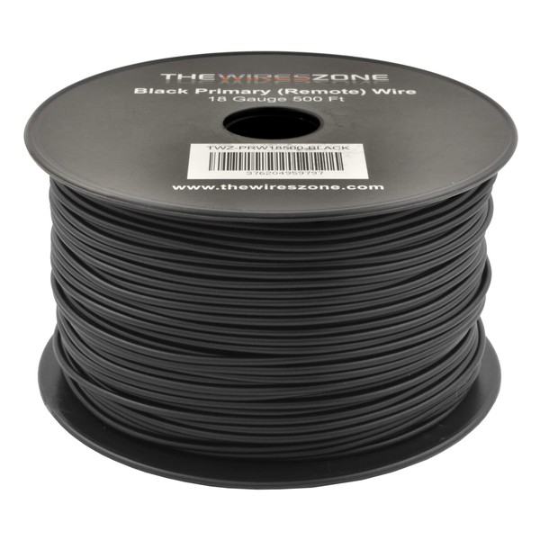 The Wires Zone 18 Gauge AWG 500' Feet ft Stranded Primary Remote Wire Cable (Black)
