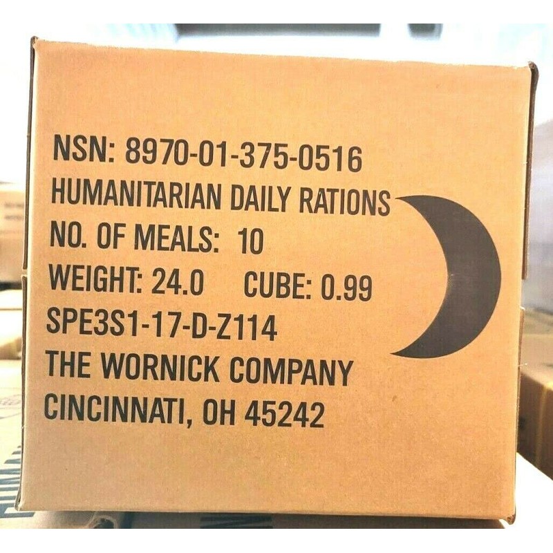 The Wornick Company MRE 1 case of HDR U.S. Military Surplus Humanitarian Meals Ready to Eat, FEMA 10 pack/ 20