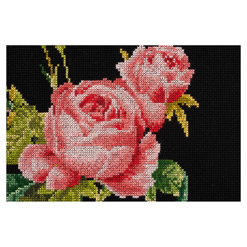• Design: Nature-inspired designs are a highlight of the cross stitch collection by Thea Gouverneur. This colourful counted cross stitch pattern features beautiful roses on a small branch