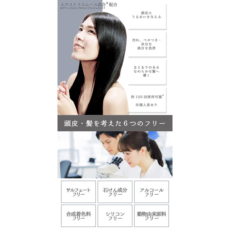 - Shampoo: Formulated with conditioning ingredients for less staining. By removing moisture from the liquid, the functional ingredients remain densely and foaming for a smooth wash