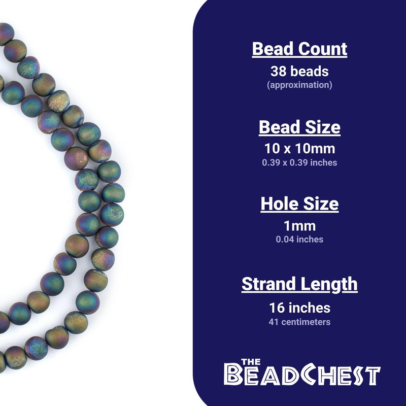 TheBeadChest Rainbow Round Druzy Agate Beads (10mm): Organic Gemstone Round Spherical Energy Stone Healing Power Crystal for Jewelry Bracelet Mala Necklace Making