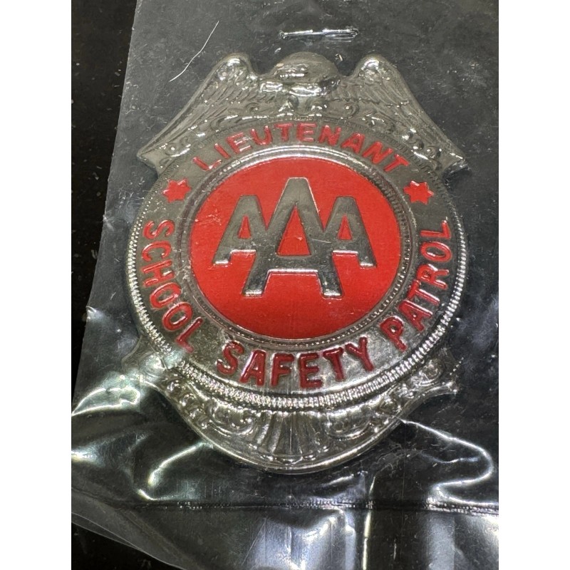 thebigtonka Vintage AAA School Safety Patrol lieutenant Badge with Red Details New Old Stock