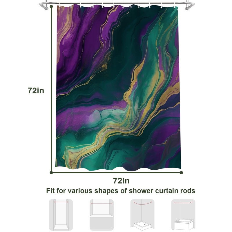 TheBlackSpot Purple Green Marble Shower Curtain Sets Gold Stripes Marble Abstract Texture Bath Curtains Christmas Decor Sets Grommet with Hooks 72W × 72H inches