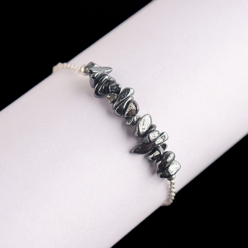 Thecraftman Natural Hematite Chips Bar Bracelet, Gemstone Bracelet, Genuine Gemstone, Birthstone, Gift for Her, Healing Stone, 8 Inch