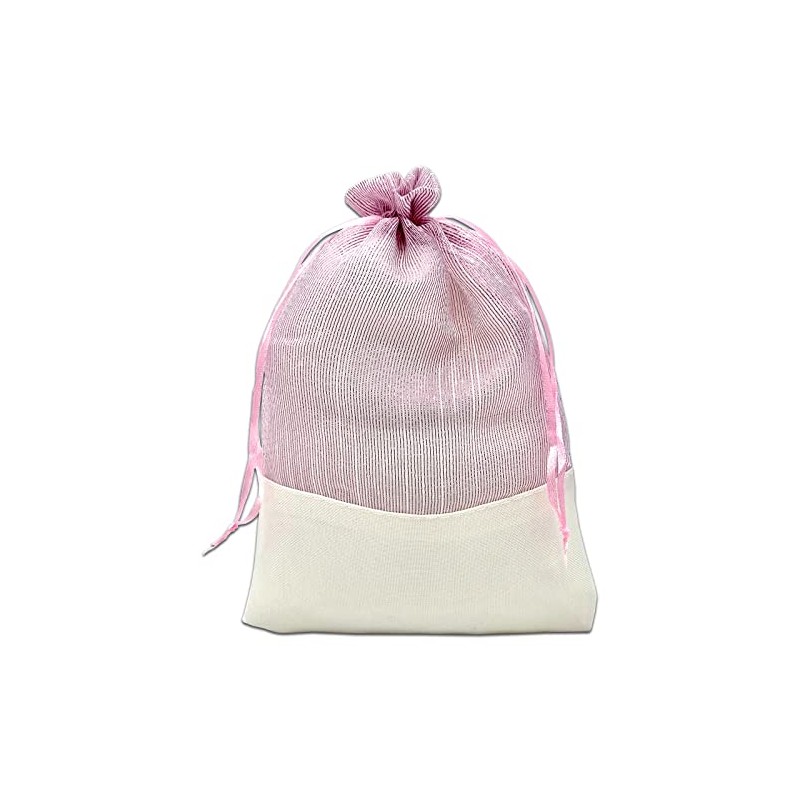 TheDisplayGuys For Your Modern Living 24-Pack Linen & Pink Organza Gift Bags with Drawstrings (Large 5 1/2 x 8) - Party Favors, Samples, Treats Mesh Pouches