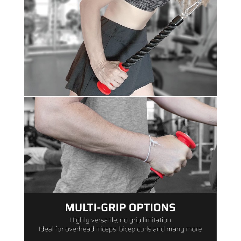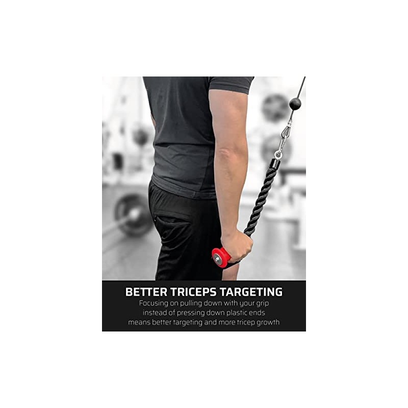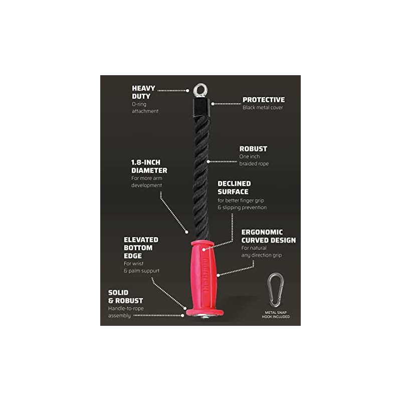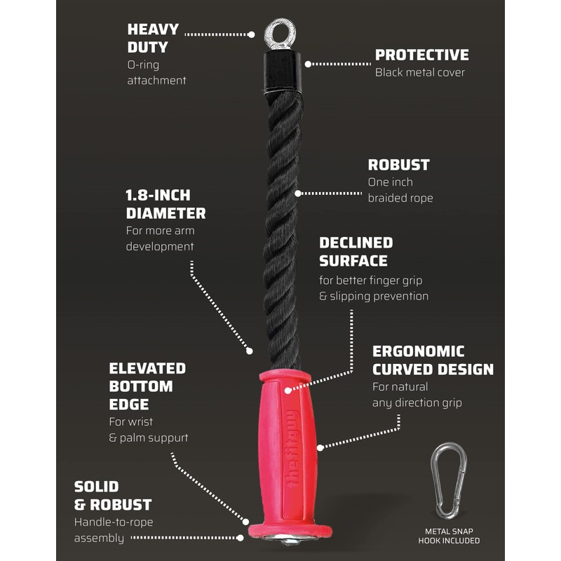 THEFITGUY Ergonomic Single Grip Tricep Rope Cable Attachment, Comfort Non-Slip Grip, Reducing Wrist Pressure and Skin Rubs, Easy to Clean, Gym Pull Machine Accessory, 16.5” Length, Snap Hook Included