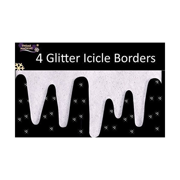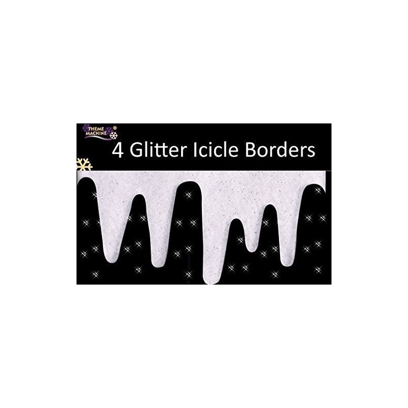 Theme Machine Glitter Icicle Borders Snow Decoration Pack of 4