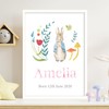Themed Peter Rabbit Print - Flowers Name and Date Personalised Nursery Wall Art (A2-42cm x 59.4cm)