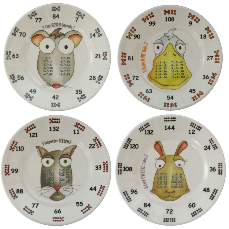 - 4-piece set includes 6" Tiny Seven Squeaks, 6" Duke Nine Bills, 6" Inspector Eleven and 6" Lord Twelve Tales plates