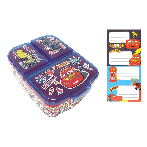 Theonoi Children's Lunch Box Sandwich Box – Children's Lunch Box with Compartments – Bread Box with Dividers, BPA-Free, with Name Sticker (Cars)
