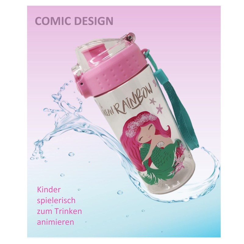 Theonoi Leak-Proof Children's Water Bottle, Water Bottle, Shatterproof, Lightweight, Tritan, BPA-Free, 500 ml, for School, Nursery, Sports (Mermaid