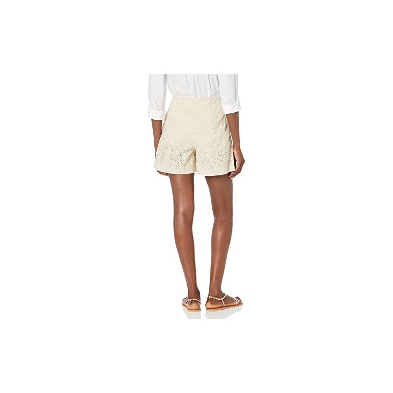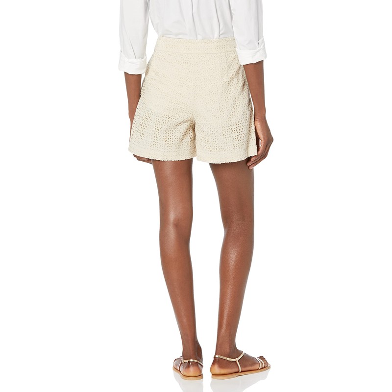 • An embroidery short with double pleat detail at front.