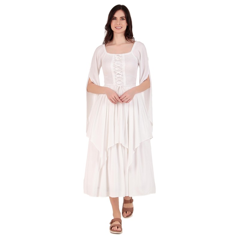 ThePirateDressing Renaissance Medieval Peasant Pirate LARP Women Long Dress C1838 White Small