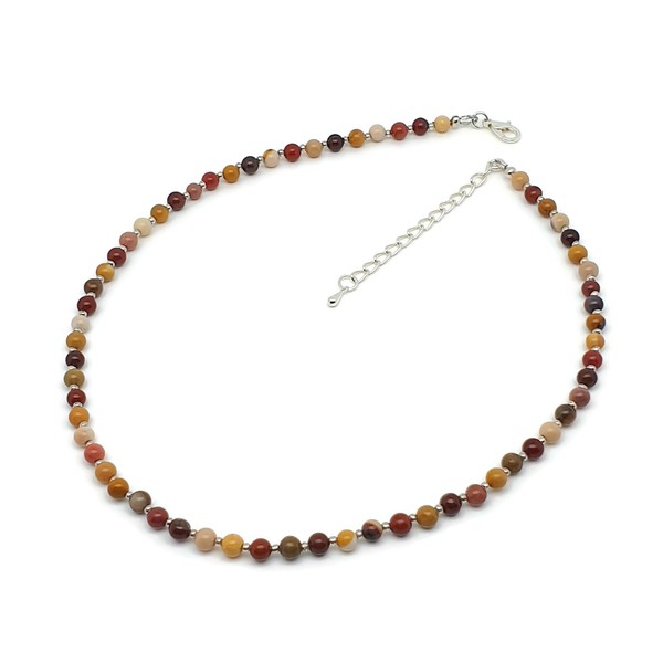 THEPRETTYBITS Mookaite Jasper Beaded Necklace, Natural Gemstone Collar, Boho Chakra Handmade Silver Plated Adjustable 16-inch Strand