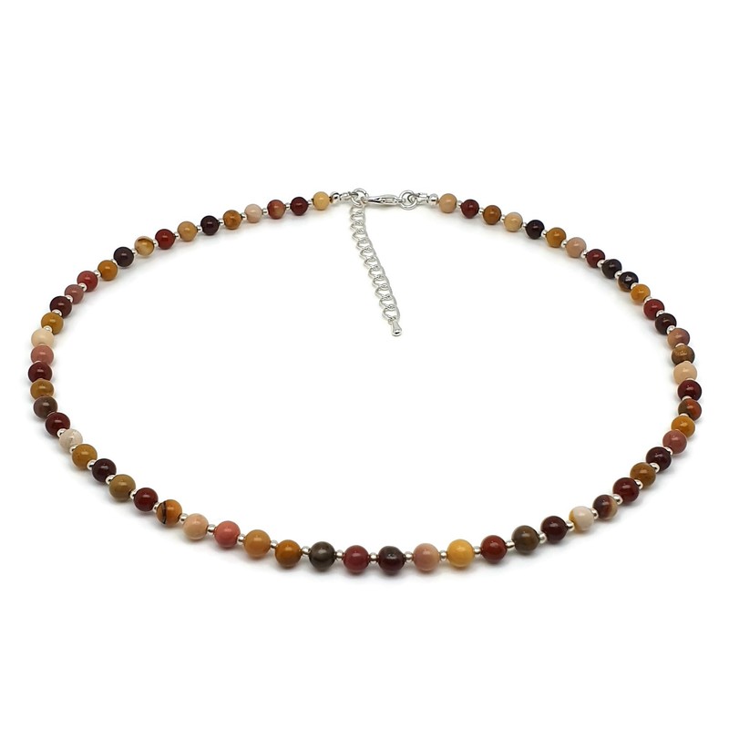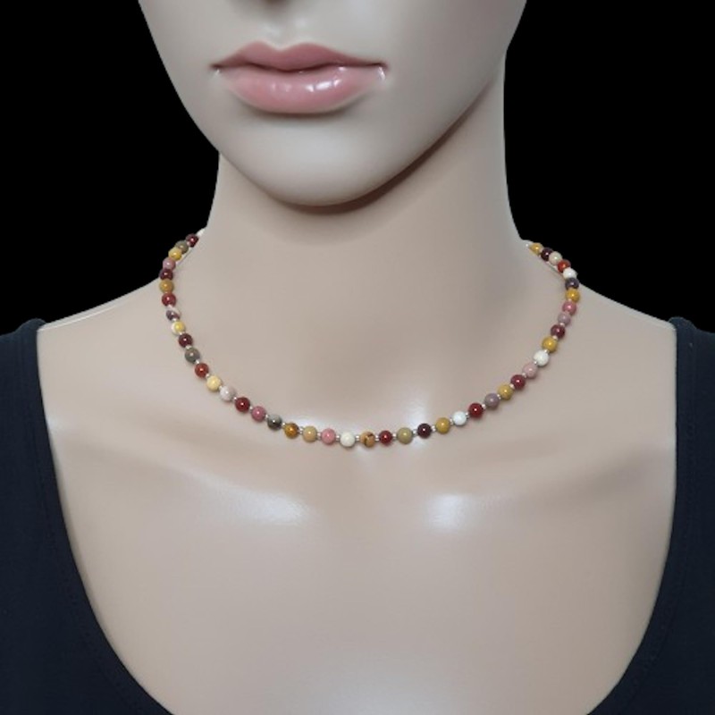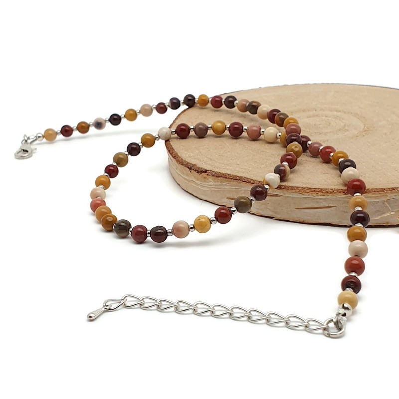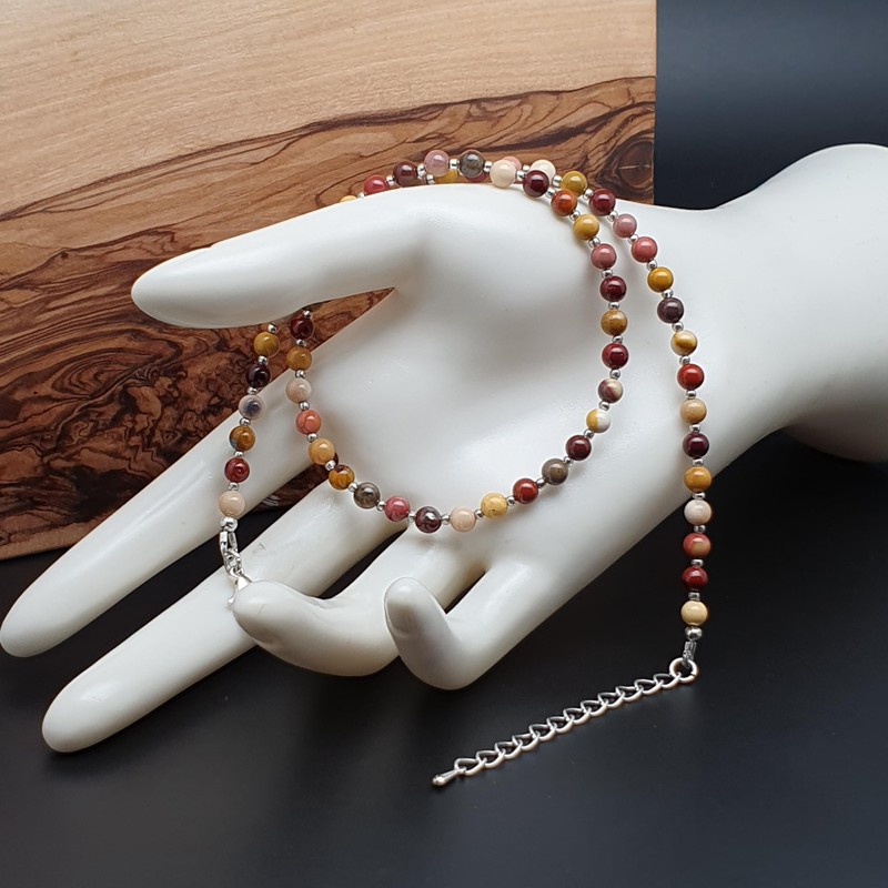 - Handmade beaded natural Mookaite gemstone collar necklace