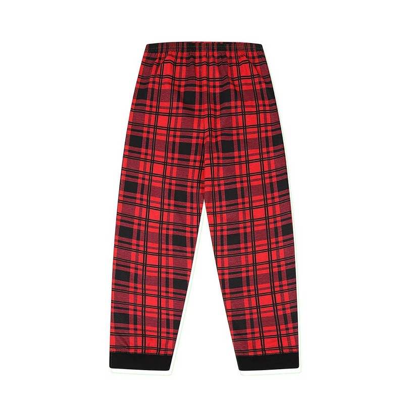 ThePyjamaFactory Children's - Boys Black/Red Pyjamas Plain Long Sleeve Top & Woven Tartan Check Bottoms (11-12 Years)