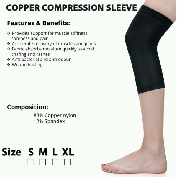 Thera Copper 3×2= 6 total THERA copper compression Knee Sleeve Medium NEW 88% copper nylon