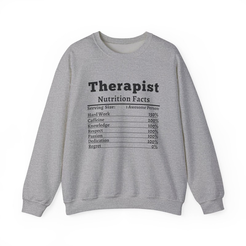 Therapist Nutrition Facts Sweatshirt Gift for Therapists Cozy Crewneck for Mental Health Awareness Sport Grey