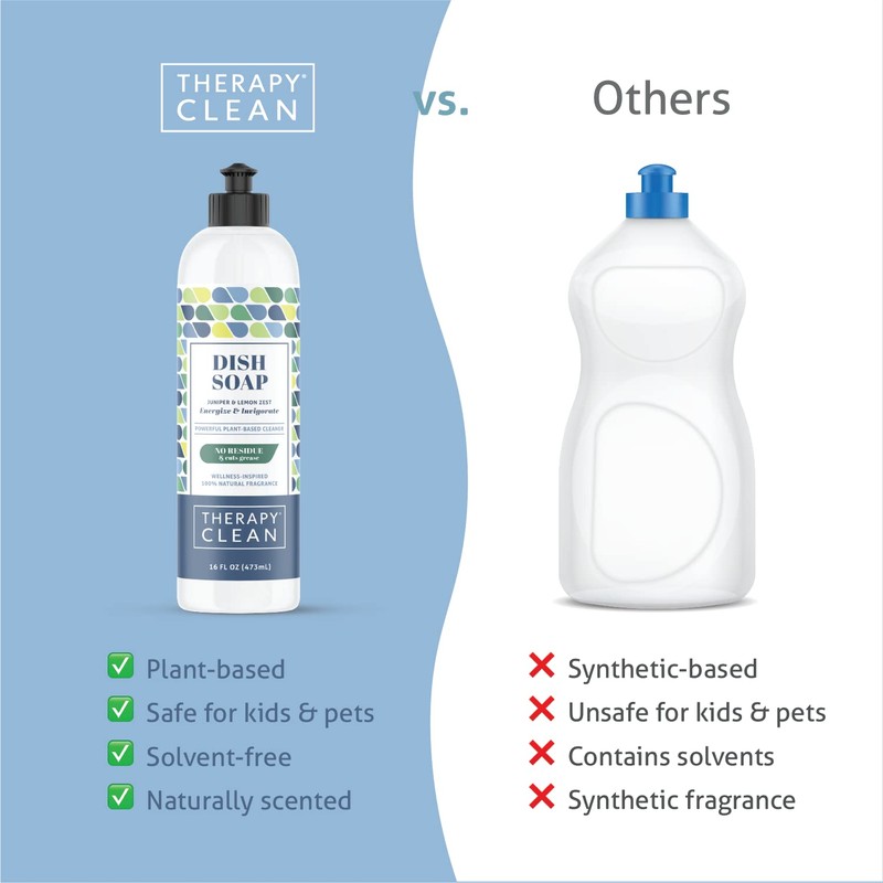 Therapy Clean Liquid Dish Soap, 100% Natural Scent, Juniper & Lemon Zest, Biodegradable Natural Dishwashing Liquid
