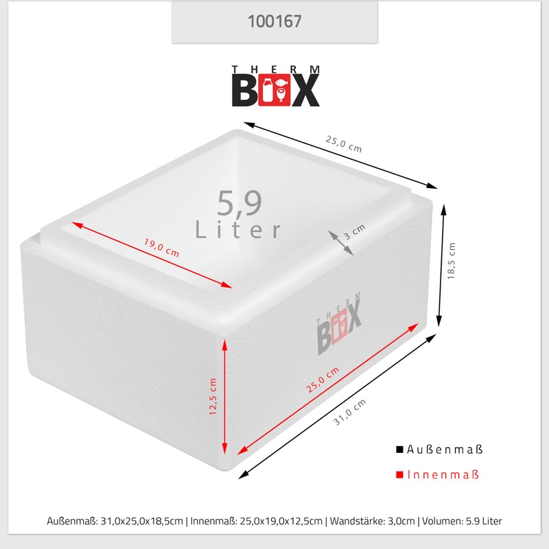 THERM BOX Polystyrene Box 5 W 31 x 25 x 18 cm Wall 3 cm Volume 5.9 L Insulated Box Thermal Box Cool Box Warming Box Reusable