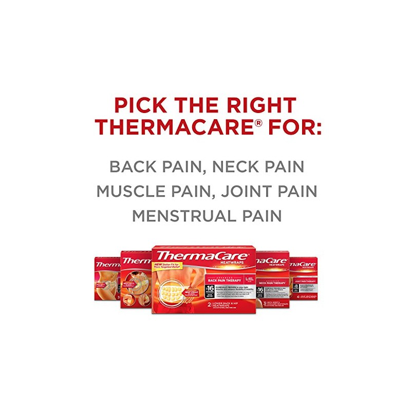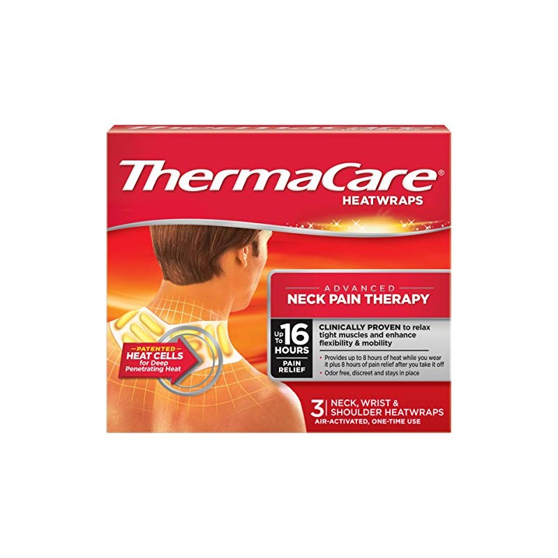 "ThermaCare Neck, Wrist & Shoulder HeatWraps are designed to conform to your neck and shoulder so you can experience long-lasting heat relief throughout your day. Patented heat cells penetrate deep into tissue, increasing blood flow to stop pain and accelerate healing. Single-use wraps can be applied to sore muscles and joint areas of your neck, shoulder, upper back and wrist. *Use As Directed Clinically proven to relax tight muscles and enhance flexibility and mobility: Provides up to 8 hours of heat while you wear it plus 8 hours of pain relief after you take it off. Odor free, discreet and stays in place. Patented heat cells for deep penetrating heat. Uses: Provides heat therapy for temporary relief of minor muscular and joint aches and pains associated with overexertion, strains, sprains, and arthritis."Satisfaction Guarantee If for any reason you are not satisfied with any GSK Consumer Healthcare product, GSK Consumer Healthcare will provide you with a reimbursement within 45 days of the date of purchase. Please note that because GSK is unable to control the quality of our products sold by unauthorized sellers, the Guarantee is not available for products purchased from unauthorized sellers due to potential quality issues outside GSK’s control. Please contact GSK Consumer Healthcare directly for more information.