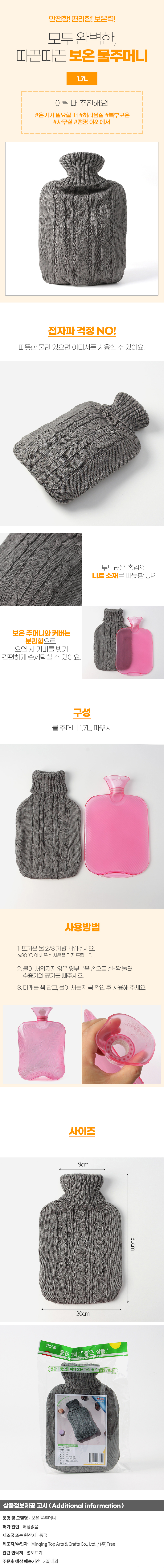 Thermal knit pouch steaming hand warmer 1.7L pack water bag