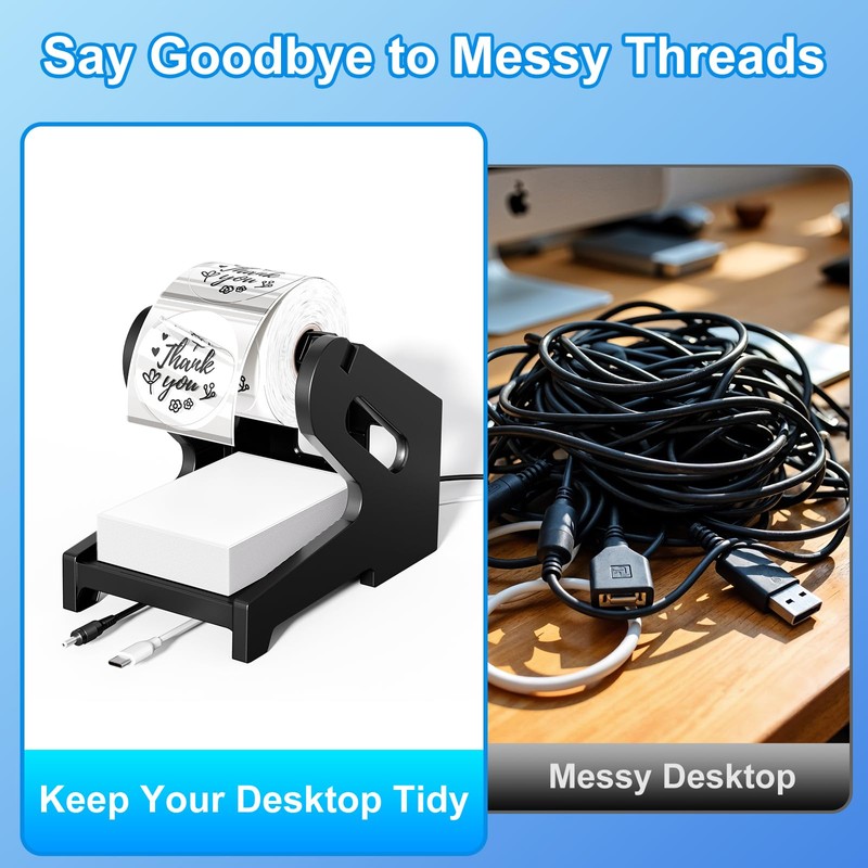 - [Space-Efficient Design] - With a unique compartment at the bottom for hiding label printer cables, ensures a neat and organized workspace. Besides, roll label holder suitable for a variety of occasions such as: environments, including warehouses, offices, supermarkets, retail shops, factories, and pharmacy store