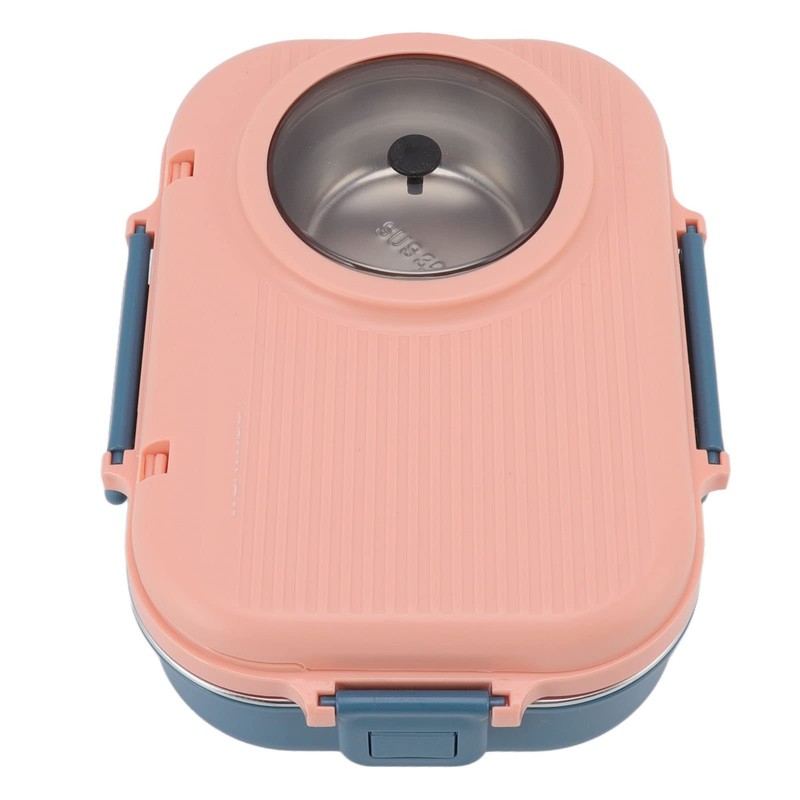 Thermal Lunch Box, Lunch Box 1100ml Double Layer 3 Grid Design 304 Stainless Steel Bento Box with Chopsticks Spoon Soup Bowl(Pink)