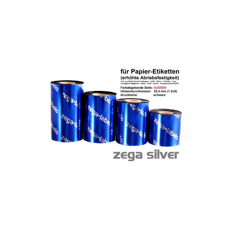 - Zega silver thermal transfer film, wax/resin quality (for printing results with increased abrasion resistance)