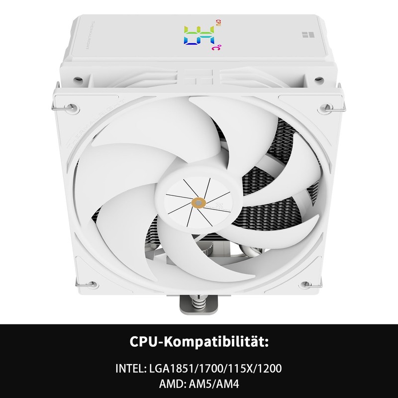 Thermalright Assassin X 120R Digital White CPU Cooler Air with 4 x 6 mm HeatPipes, Digital Screen Top Cover, PWM Fan Heatsink, CPU Cooler, 151 mm High, for AM5 and Intel LGA1700/1851/1150/1151/1200