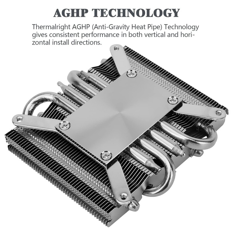 • 【AGHP technique】4×6mm heat pipes apply AGHP technique, Solve the Inverse gravity effect caused by vertical / horizontal orientation, cpu cooler TDP up to 95W, the cooling effect of the cpu cooler is also doubled by the process of secondary welding of heat pipes and fins.