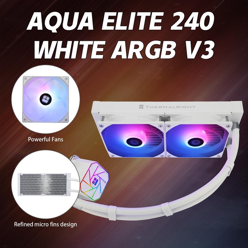 Thermalrlght Aqua Elite 240 White V3 Aio CPU Cooler, 240 Liquid Cooling Row, ARGB PWM Cooler Fans, for Intel LGA1150/1151/1155/1156/1200/2011/1700, AMD: AM4/AM5, Aio PC Cooler