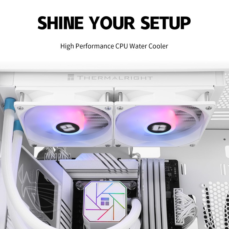 - 【Best Cooling】 The chiller adopts the fourth generation pump head 240 White Aluminum Fin Cold Row Size 120mm Mesh Water Pipe Standard Configuration White Aluminum Fin Heat Sink Heat Sink Size of ARGB Fan Standard Configuration, to create low vibration, High heat dissipation, low evaporation, high service life of one-piece water-cooled cooling area unit.