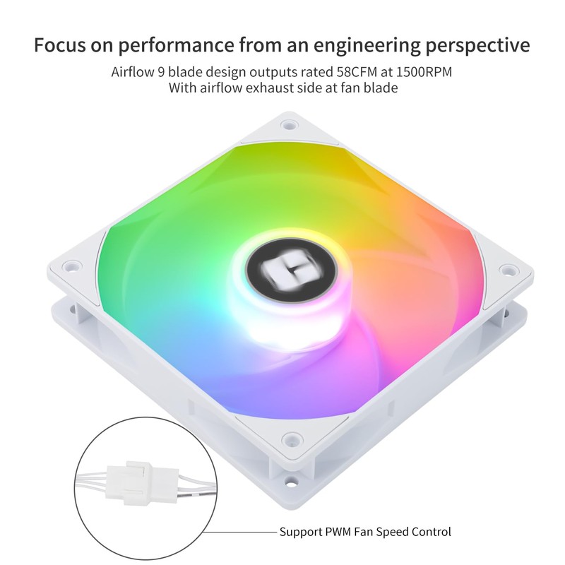 - [Excellent LED light] The high-brightness LED atomizing argb fan blade can effectively reflect the light, making the ARGB lighting effect softer, and it matches the cooler and case more perfectly. Up to 17 modes of light effects with ARGB support, color can be managed and synchronized through the port on motherboard.