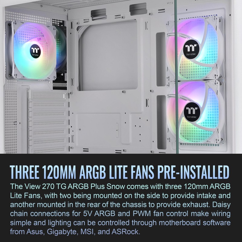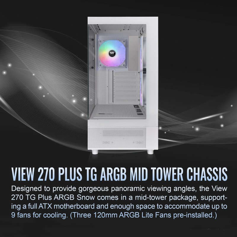 Thermaltake View 270 Plus TG ARGB Snow Mid Tower E-ATX Case; 3x120mm ARGB Fans Included; Support Up to 360mm Radiator; Front & Side Dual Tempered Glass Panel; CA-1Y7-00M6WN-01; 3 Year Warranty