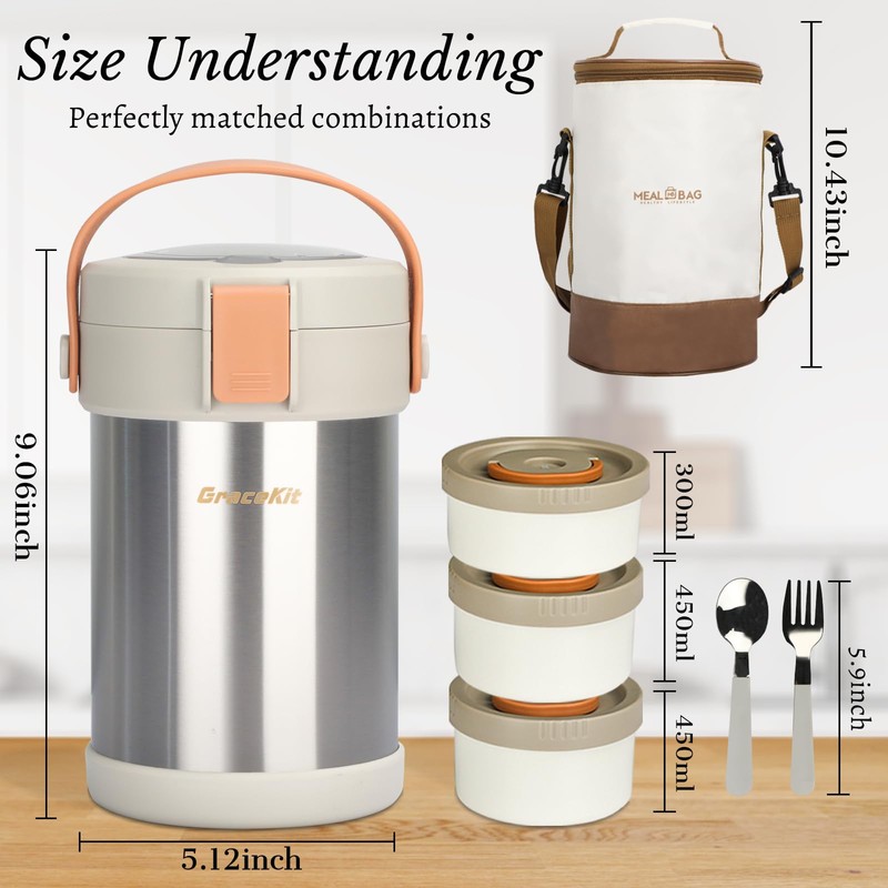 - Multi functional design: Food thermo for hot food is equipped with three separate stainless steel compartments and advanced sealing technology, soup thermo for adults prevents food from mixing and maintains the original flavor of each dish, allowing you to enjoy a more varied and nutritious cuisine. It also features a unique double-layer, stand-alone design that ensures it won't cause burns. insulated food jar are ideal for work or outdoor adventures