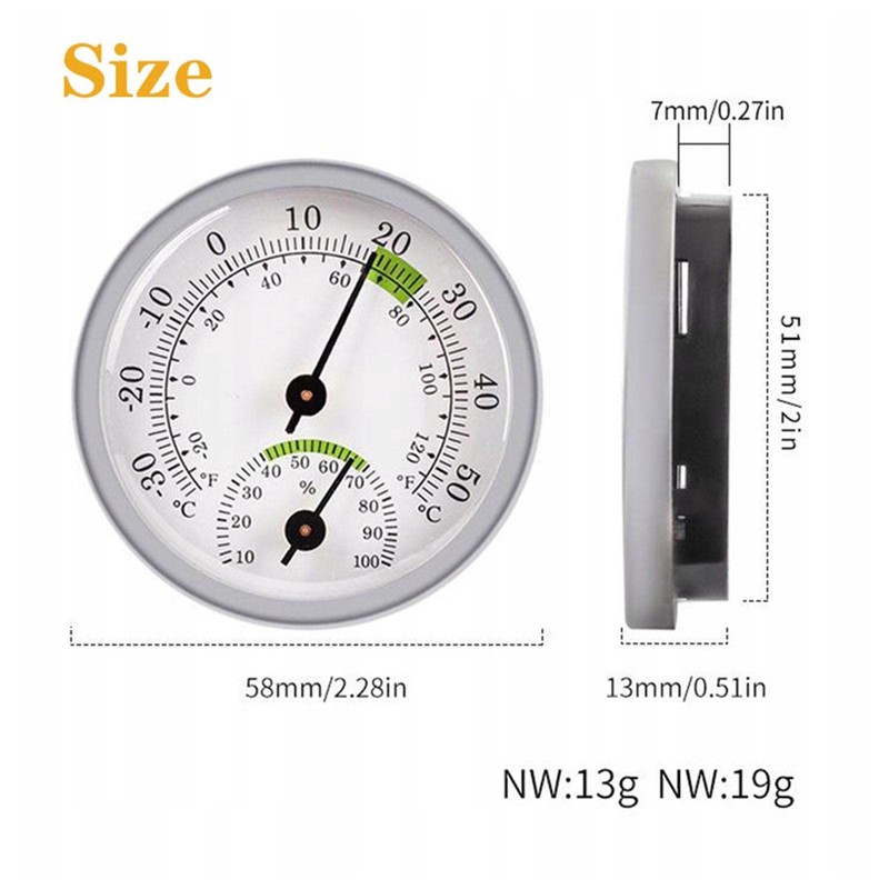 - ✔️【Easy to read】Indoor thermometer hygrometer. The dial made of aluminium alloy is easy to read. The glass lens, black hands, white dial and clear scale make it easy to read.